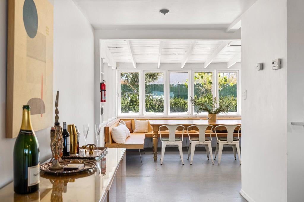 Discover a striking mid-century modern oasis set on 3.14 acres (five individual lots) just outside the north entrance of Joshua Tree National Park in Twenty-nine Palms. Conveniently located just 5 minutes to downtown AND park the entrance, this unique property effortlessly blends timeless architectural design with the serene beauty of the high desert landscape.Step inside to a thoughtfully curated interior where mid-century meets modern comfort. The open and airy layout features polished concrete floors, clean lines, and expansive windows that flood the home with natural light and frame sweeping desert views. The inviting kitchen is designed for both everyday living and entertaining, complete with a built-in dining table and cozy window seating--ideal for enjoying morning coffee or sharing meals with friends. Enjoy not one, but two fireplaces with over 2,100 SF. and 3 bedrooms / 2 bathrooms.Outside, the fully fenced grounds offer endless potential. Imagine a sparkling pool nestled among citrus trees and native flora, with panoramic mountain vistas serving as your backdrop. As the sun sets, watch the desert sky ignite with color, casting a golden glow over your personal sanctuary. With 7 Manzanilla olive trees, outdoor patio with firepit, built-in BBQ and smoker, a 2-car garage and shop, what else could you ask for?Whether you're seeking a peaceful retreat, an inspiring artist's haven, or a short-term rental opportunity, this property offers the rare combination of style, space, and location. Just five minutes from the entrance to Joshua Tree National Park, you'll have world-class hiking, climbing, and stargazing right at your doorstep.This is more than a home--it's a lifestyle shaped by natural beauty, quiet seclusion, and architectural charm. Welcome to your desert dream.