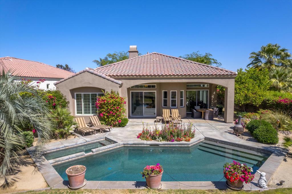 Welcome to Mira Vista located in the city of Rancho Mirage. Our beautiful Escondido plan offers 2 bedrooms, 2 baths and a den, golf course and mountain views and with privacy for the pool area and back patio. Upon entering, you will love the travertine flooring leading to the large great room with 12' ceilings and a fireplace, with plenty of space for it's gorgeous dinning room table. The open concept kitchen offers top of the line appliances, granite counter tops and a large sitting/serving bar. The primary bedroom shares the great Southern fairway views. Has a large walk-in closet, separate shower and tub. The guest bedroom is large and offers an en suite bathroom. The den/TV room is located at the front of the home and large enough for you and your guests to relax and watch TV. The deep rear yard features a saltwater pool and spa and lots of patio area and privacy. The community offers 2 lighted pickle ball courts and 1 lighted tennis court.Available November 2025 through January 2026 at $5,500.00 Also available for Summer Rental, call listing agent for information. Not available Feb. & Mar. 2026