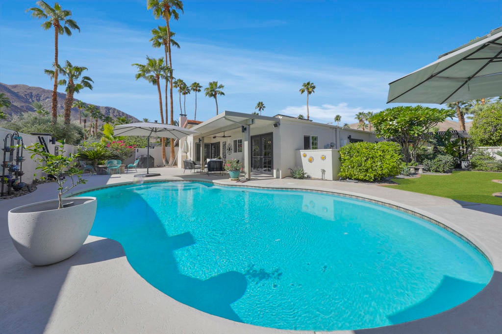 ****Classic 1970's Charmer with Spectacular Mountain Views!!! Beautifully maintained truly special 3 bedroom, 3 bath home combining timeless architecture with a COMFY modern vibe. WONDERFULLY updated kitchen expansive Living-room, dining-room as well as family-room that offers a Spacious light-filled interior opening seamlessly to an ENTERTAINERS backyard featuring a SPARKLING salt water pool, expansive patio and multiple sitting areas/fire pit to take in those breathtaking MOUNTAIN VIEWS. Designed for effortless indoor/outdoor living, this desert retreat offers style, privacy, and sophistication. Perfectly situated high up in the Magnesia Falls Cove-where tranquility meets STUNNING scenery. No HOA.