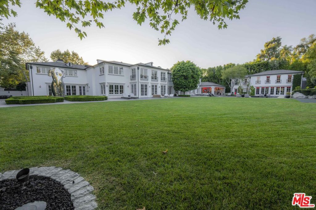 One the most spectacular and beautiful estates in Holmby Hills, situated behind gates on over 1.3 entirely level acres. A cobblestone driveway leads to a completely remodeled two story traditional estate with classic European details. Featuring a gorgeous, paneled entry foyer with sweeping staircase flooded with natural light. Large living room, formal dining, wine cellar, office, gourmet kitchen with family room & separate catering kitchen. There's a state-of-the-art theatre that can accommodate 35 people. Upstairs is the primary suite with luxurious dual baths and large closets, and a wide gallery hallway leads to all guest/family suites. There's a 2-story guest house with large gym, recording studio and guest bedrooms. The stunning grounds feature beautiful lawns, mature trees, formal gardens, a resort like swimming pool with waterfall and grotto, basketball court, spa house and an outdoor covered loggia with BBQ, bar, and pizza oven. Shown to prequalified clients only.