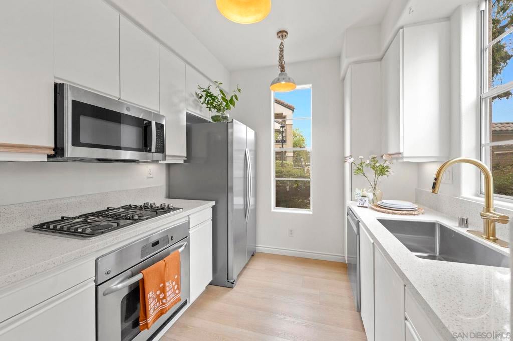 This upgraded 2B/2B is located the heart center of Carmel Valley. From new flooring, countertop, appliances to the small things such as lights and faucets, you can tell the owner is very passionate to level up the unit's interior condition to welcome the next homeowner. There are tennis court, gym, Jacuzzi and pool in this community. Minutes away from beaches, 5&56 freeways. One Paseo shopping center and restaurants nearby.