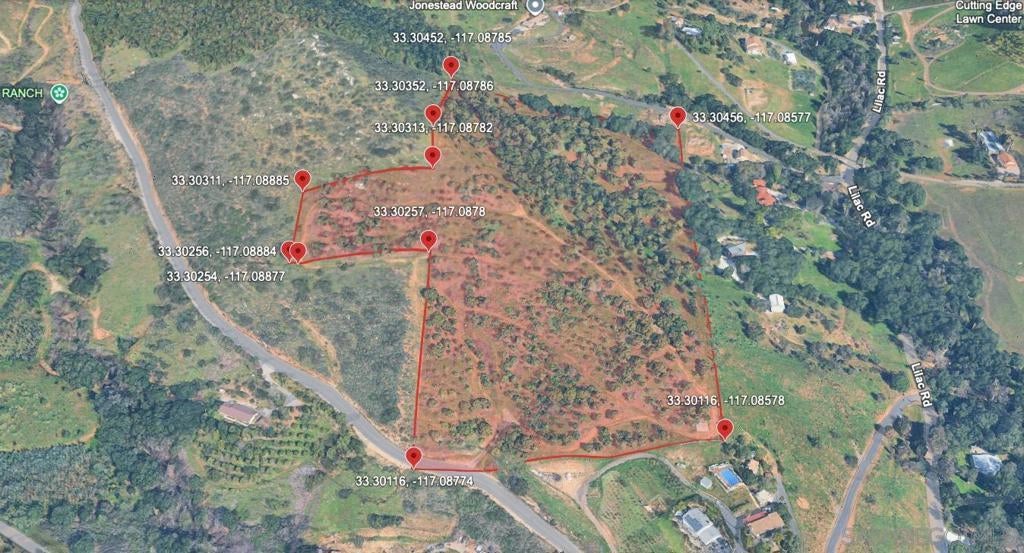 Don’t miss this exceptional opportunity to own two contiguous parcels totaling approximately 18.93 acres on Couser Canyon Rd in Valley Center, CA 92082 — APNs 128-180-40 and 128-180-44. This beautiful property features gently rolling terrain, panoramic views, and approximately 600 trees in various stages of development, creating a lush and vibrant natural setting. With water and electricity already available on-site, the groundwork is in place for your vision to take shape. Surrounded by custom estates, groves, and the peaceful charm of rural North San Diego County, this offering delivers both privacy and accessibility, just minutes from Lilac Road and the heart of Valley Center. ****No soils reports, surveys, etc., have been done. Buyer and buyer's agent to verify all information with the city or county for allowable uses and requirements and rely on their own investigations. **Buyer responsible for checking zoning, utilities, permits and exact property boundaries. ****