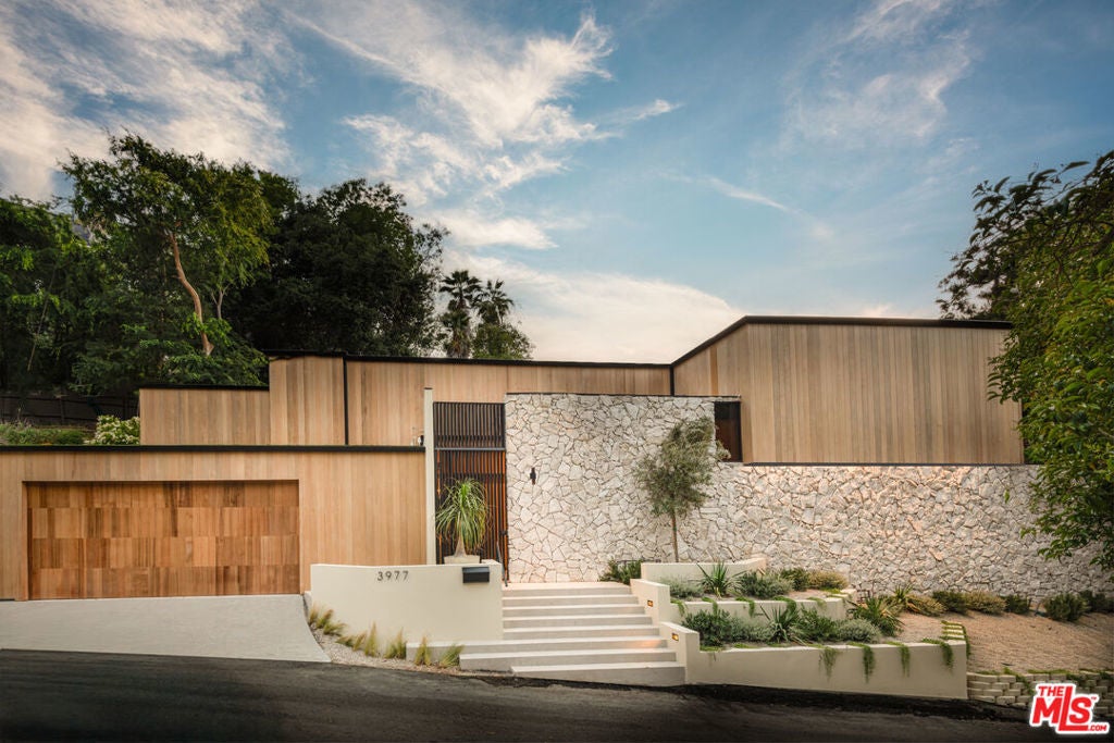 Welcome to 3977 Oeste Avenue. A beautifully renovated home blending mid-century roots with modern style, tucked south of the Boulevard in prime Studio City. This 3-bedroom, 3-bathroom plus office residence blends warm natural materials, thoughtful craftsmanship and high-end finishes throughout. Wrapped in cedar wood siding and artisan stonework, the exterior makes a striking impression. Inside, custom wood cabinetry, rustic herringbone flooring and richly layered textures create a refined yet grounded aesthetic. Light pours into the open living area through sliding glass doors that lead to a private outdoor retreat with a built-in grill, perfect for entertaining. The kitchen features paneled appliances, natural stone countertops and sleek modern fixtures. The adjacent dining room and family room flows seamlessly, creating an open, connected feel. A powder room, spacious laundry room, and attached two-car garage with electric vehicle (EV) charger plus guest parking complete the main level. Upstairs, the bright and airy primary suite includes floor-to-ceiling windows, custom closets, and a spa-style bathroom with a soaking tub, walk-in shower and dual sinks. Two additional bedrooms, a full bath, and a versatile den or office round out the upper level. Located near dog-friendly hiking trails in Studio City and Sherman Oaks, with easy access to Mulholland Drive, Beverly Hills, and the Westside via Coldwater Canyon. Just minutes from Ventura Boulevard and The Shops at Sportsmen's Lodge, home to Erewhon, Equinox, and fine dining and upscale retail, as well as top-rated schools like Dixie Canyon and Harvard-Westlake. Set in a tranquil, nature-filled pocket close to the energy of the city, this home offers the best of both worlds.