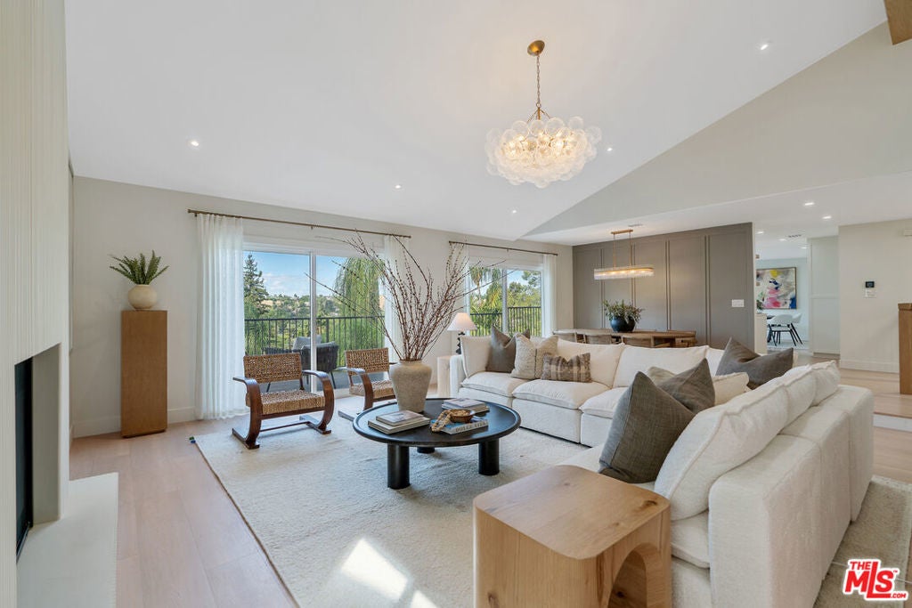 Discover the timeless beautify of 4825 Galendo Drive - A fully Remodeled Woodland Hills Estate with Sweeping Views. Located South of the Boulevard in one of Woodland Hills' most desirable neighborhoods, this beautifully remodeled residence offers over 4,000 sq. ft. of living space with soaring ceilings and panoramic views of the mountains and treetops from nearly every room. 4825 Galendo Drive has been fully reimagined as a brand-new home offering a one of a kind living experience with a curated interior design. Every detail of this single story 6 bedroom 4 bathroom residence has been thoughtfully upgraded inside and out - including dual primary suites with expansive walk-in closets and spa-inspired baths. The impressive vaulted-ceiling family room is centered by a custom fluted fireplace and includes a built-in bar area, while the dining room captures stunning sunset views. A chef's kitchen with a large center island, premium appliances including a Thermador range and a charming breakfast room with custom built-ins completes the main living area. A sweeping balcony extends off the main level, offering serene vistas and seamless indoor-outdoor living. The lower level provides a full guest/entertaining suite complete with its own kitchen, bedroom, and full bath, ideal for visitors, extended guests, or multi-generational living. The backyard is designed for resort-style entertaining, highlighted by a covered patio, sparkling pool with waterslide, and cascading spa set against a backdrop of tranquil canyon scenery. This home combines elegance, versatility, and breathtaking views in a prime Woodland Hills location.