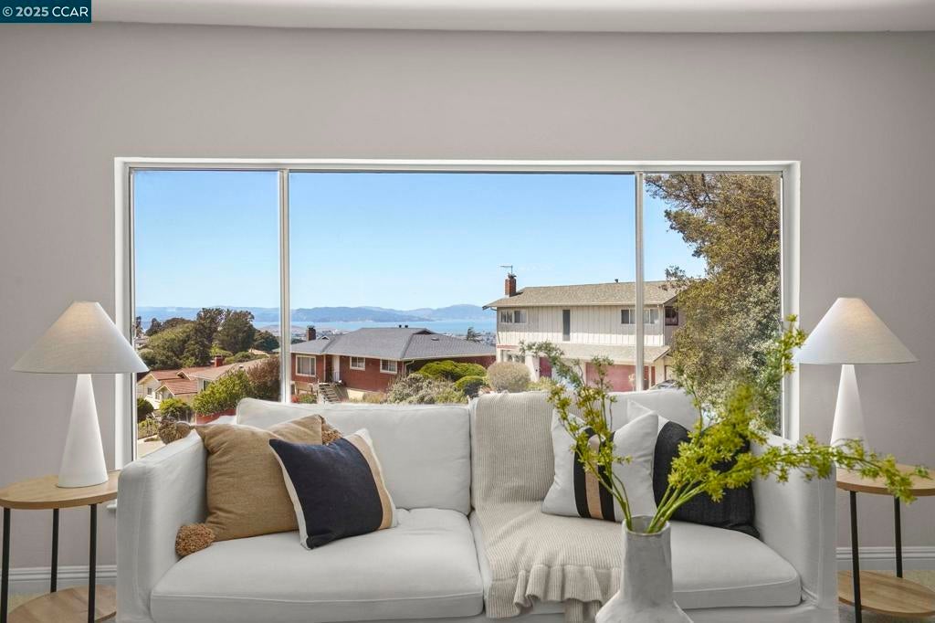 stunning water views greet when you walk into this light-filled 3-bedroom, 2-bath charmer. Freshly painted throughout with brand-new carpet and stylish lighting, this home is move-in ready and full of personality. Step into the sun-drenched living room and soak in the views from the oversized front window. The open-concept layout flows effortlessly into the updated kitchen and cozy family room—complete with pellet stove and built-in bar—ideal for hosting everything from game nights to holiday get-togethers. The spacious primary suite features a brand-new vanity in the private en suite bath, while two additional bedrooms offer flexibility for guests, a home office, or whatever your lifestyle demands. The hall bath and convenient laundry on main floor add to the home's smart functionality. Outside, you'll find two back decks perfect for dining al fresco or relaxing under the stars. Head to the top of the property & see panoramic water views that beg for a custom deck or dream hangout spot—sunsets, stargazing. All this and a back up generator so no worry about power ever! Also, an elec car charger, earthquake retrofitted, engineered retaining wall w/french drains are just a few of the many improvements!