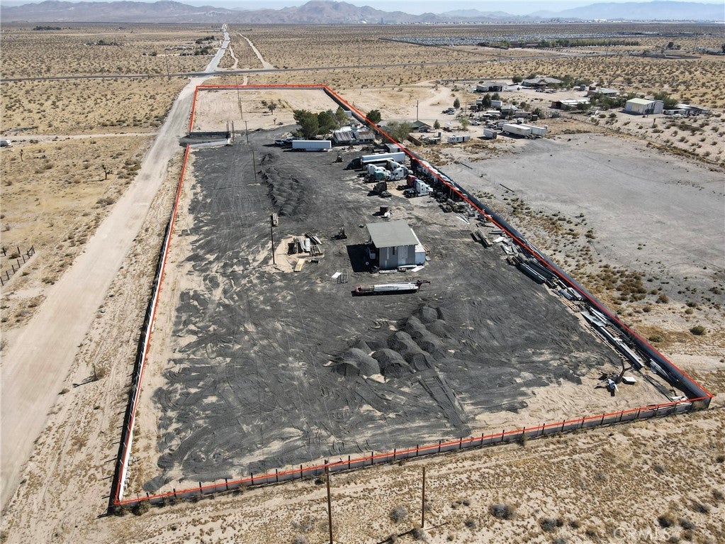 The property spans ten acres (435,600 square feet) and is in San Bernardino County with Rural Living RL-5 zoning. It features three water wells and one water tank surrounded by necessary fencing. Currently, the land is utilized to park semi-trucks.