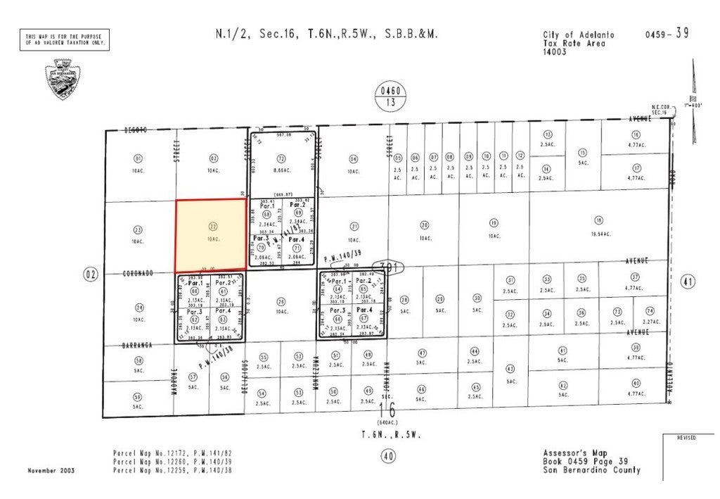 ±10 acres of unimproved industrial land for sale on Coronado Ave in Adelanto; APN: 0459-391-22. Zoned Airport Development District (ADD) this lot permits for a variety of industrial and commercial uses, including warehousing, truck parking, outdoor storage, and cannabis cultivation. This location is also within a Qualified Opportunity Zone and eligible for potential tax benefits. Neighboring businesses LKQ Auto Parts & Salvage, Thi?n Vi?n Chân Nguyên Buddhist Meditation Center, West Victor Valley Shooting Club, and more. This location is in proximity to support the Southern California Logistics Airport, whose tenant roster includes Amazon, Boeing, GE Aviation, Kuerig Dr. Pepper, M&M/Mars, Newell Rubbermaid, and more. Less than one-half mile to Highway 395, 12 miles to Interstate 15, and 70 miles to the Ports of Los Angeles. This site is also approximately 25 miles from BNSF’s future Barstow International Gateway (BIG), a state-of-the-art intermodal facility spanning 4,500-acres designed to revolutionize international logistics and distribution regionally and domestically. Buyer to verify all information contained herein. Agent and their representatives are not responsible for the accuracy of these claims.