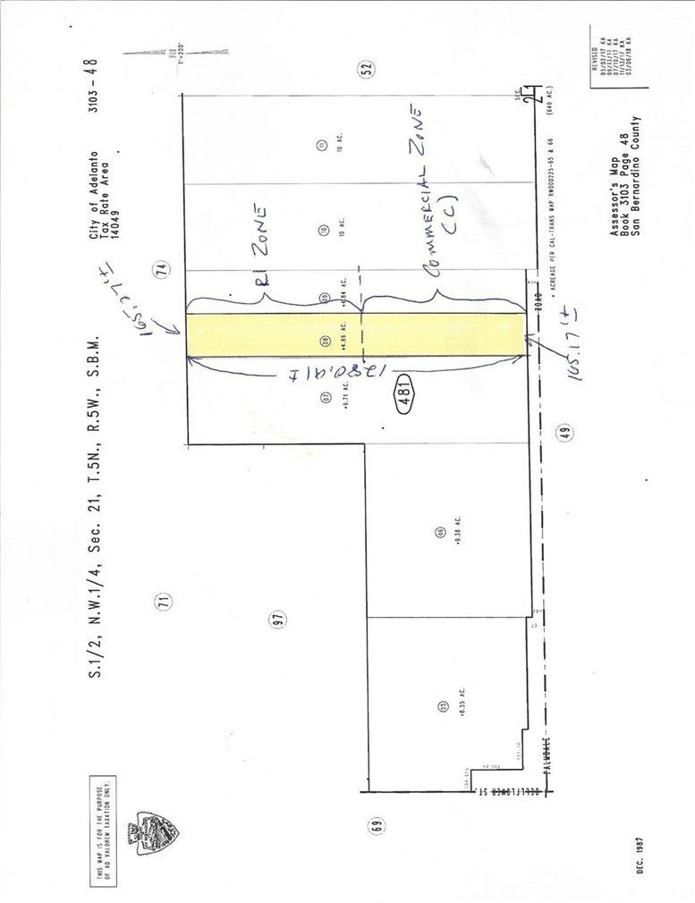 Split zone. R1 rear and Commercial (C) in front. Approx 165' on Palmdale Road. Rear has frontage on Begonia Road. Level+- topography. Westerly property is approximately 1,600 feet east of Bellflower Street on north side of Palmdale Road. If going in from Begonia Road, westerly property line is approximately 350 feet from easterly line of Delicious Street. Very few Joshua trees on property. Ample room for development without disturbing Joshua trees. Seller will consider holding paper with 50% down.
