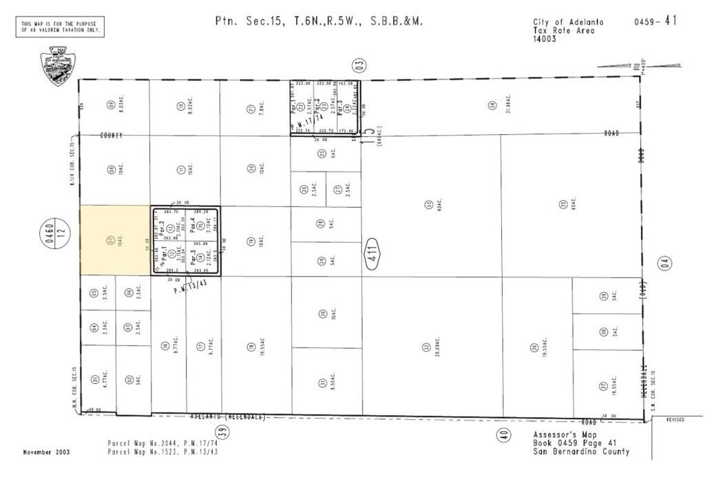 ±10 acres of industrial land for sale on Desoto Ave in Adelanto; APN: 0459-411-07. Zoned Airport Development District (ADD) this lot permits for a variety of industrial and commercial uses, including warehousing, truck parking, outdoor storage, and cannabis cultivation/processing. This location is also within a Qualified Opportunity Zone and eligible for potential tax benefits. Neighboring businesses LKQ Auto Parts & Salvage, Thi?n Vi?n Chân Nguyên Buddhist Meditation Center, West Victor Valley Shooting Club, and more. This location is in proximity to support the Southern California Logistics Airport, whose tenant roster includes Amazon, Boeing, GE Aviation, Kuerig Dr. Pepper, M&M/Mars, Newell Rubbermaid, and more. Less than one-half mile to Highway 395, 12 miles to Interstate 15, and 70 miles to the Ports of Los Angeles. This site is also approximately 25 miles from BNSF’s future Barstow International Gateway (BIG), a state-of-the-art intermodal facility spanning 4,500-acres designed to revolutionize international logistics and distribution regionally and domestically. Buyer to verify all information contained herein. Agent and their representatives are not responsible for the accuracy of these claims.