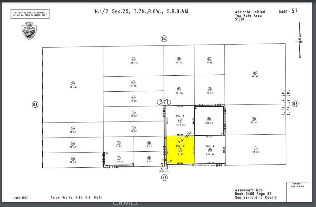 Square corner parcel only 1/2 mile north of city limits of Adelanto. 1.2 miles west of Highway 395. Enjoy the rural lifestyle or a weekend ranch to get away from the crowded city. OHV riding areas and mountains nearby. Zoning is RL-5(Rural Living-5 ac minimum). GPS Coordinates: 34.668701,-117.461950