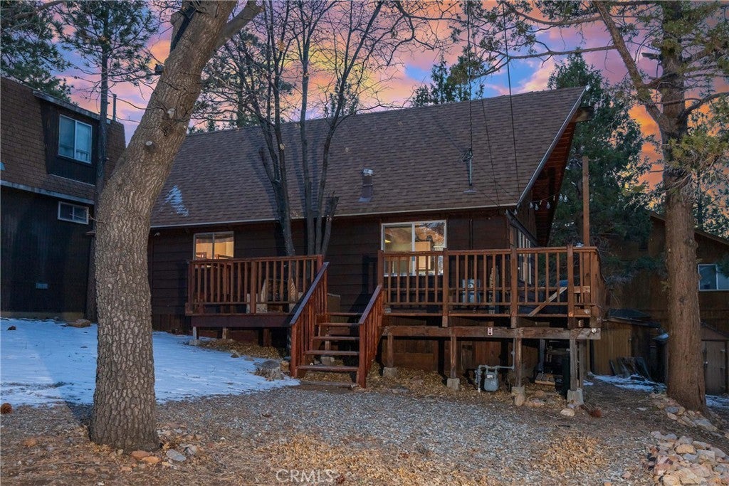 Delightful mountain retreat nestled in the peaceful Sugarloaf community, just steps away from the National Forest. This adorable cabin features two bedrooms - plus a loft, two bathrooms, and an inviting open floor plan with vaulted ceilings that create a spacious and inviting atmosphere. The cozy wood-burning fireplace adds warmth to your gatherings, while the wrap-around deck is ideal for relaxation and soaking in that fresh mountain air. Newer roof for added piece of mind. Comfortable sized lot with ample parking ensures convenience for your year-round outdoor adventures. Located just a short drive from the ski slopes, lake, and local amenities, this cabin is the perfect blend of adventure and tranquility. Discover your next escape with this charming Big Bear getaway!