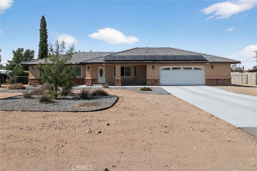 Welcome to this meticulously maintained 4-bedroom, 2-bathroom home in Apple Valley, offered by the original owners. This 1,763 sq ft residence seamlessly blends a cozy "home" feel with modern, high-end upgrades, offering the perfect sanctuary for any family. Step inside to find durable and clean ceramic tile flooring that flows through the main living spaces. The kitchen is a true centerpiece, boasting sleek granite countertops and ample cabinet space, perfect for preparing family meals or entertaining guests. The private master suite is a true retreat, featuring a spacious large closet and a spa-like ensuite with a luxurious soaking tub—a perfect place to unwind at the end of the day. Beyond the home's interior, you'll discover more incredible features. A tankless water heater ensures endless hot water on demand, while the huge, fully insulated garage provides not only secure parking but also a comfortable workspace or storage area year-round. The outdoor space is an entertainer's dream, with a fully fenced, large backyard that offers a private oasis for kids, pets, and summer barbecues. The space allows for you to Make it your own. The home also comes equipped with an environmentally friendly leased solar system, a valuable feature that helps reduce monthly utility costs. this is more than just a house—it's a place to call home. Seller is motivated and willing to assist buyers in some situations come check it out before its gone.