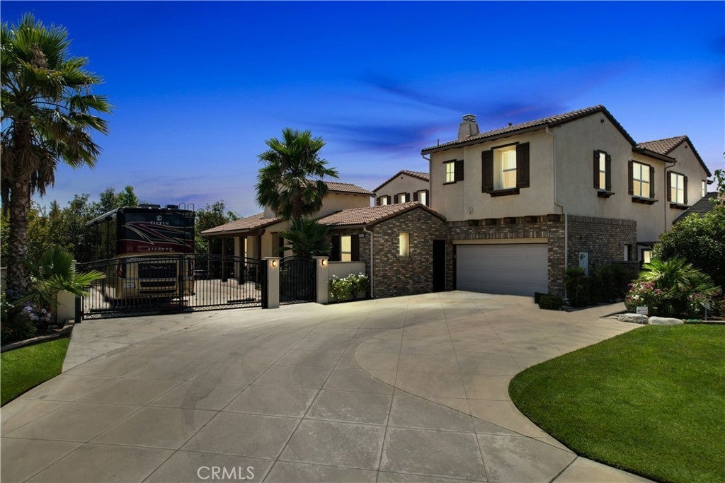 Welcome to Carriage Manor and currently the largest estate available in the beautiful City of Rancho Cucamonga, this magnificent residence is nestled on a quiet cul-de-sac in the coveted Bridlewood Estates community. Set on over a half acre lot, this property boasts 6 bedrooms, 6 baths, and multiple entertainment areas, offering over 6,690 square feet of unparalleled grandeur. As you drive past the private gates, you are greeted by impeccably landscaped grounds that elevate the home's exceptional curb appeal. Stepping through the custom front door, you’ll discover an equally stunning interior showcasing the finest finishes and meticulous attention to detail. From soaring ceilings, exquisite millwork, and rich hardwood floors, every element has been thoughtfully designed. The kitchen, a culinary enthusiast’s dream, with custom cabinetry, natural stone countertops, a butler's pantry AND a wine vault. It seamlessly opens to the family room, offering an open-concept living space. Exquisite crown molding, and trey ceilings enhance the dining room’s refined atmosphere, ideal for intimate celebrations. Afterward, enjoy nightcaps in the sophisticated wine room. The main floor is complete with one bedroom with an en suite bath, convenient for out of town guests. Upstairs you'll find your massive primary suite featuring a large sitting area, fireplace, and walk in closet. Outdoors you can enjoy entertaining guests in the screened-in porch or private courtyard featuring a fireplace, you can truly enjoy your outdoor space all year long. The backyard is complete with a  pool and spa, fire pit, a half court basketball, in ground trampoline, still with ample room for sitting and entertaining. Perhaps the best part of this incredible property is the 1,200+ sq ft guest retreat, with private bath and separate entrance. Currently being used as a complete home gym. This could also be used as a living quarter for multi generational families, or even an in-home learning or study area, the option is yours! Every detail in Carriage Manor has been crafted to provide an exquisite living experience, making it a true masterpiece in the Bridlewood Estates community. There are too many special features to list, close proximity to great restaurants and shopping, within the distinguished Etiwanda school district, this rare property is truly one of kind.