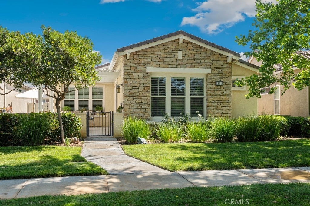 Resort-style living awaits in this beautiful home in the guard-gated 55+ community of Four Seasons by K. Hovnanian in Beaumont. Enjoy tree-lined streets, manicured landscaping, and exceptional amenities including a clubhouse, gym, pool, spa, tennis courts, and scenic walking trails. This charming home features a welcoming pergola-covered front patio, a cozy living room with fireplace, wood shutters, and laminate flooring throughout. The kitchen boasts a spacious island with bar seating, pantry, and adjoining dining area. A flexible office/den, full guest bath, and guest bedroom offer versatile living space. The private primary suite includes a walk-in closet and dual sink vanity. Attached 2-car garage completes the home. Move-in ready and designed for comfort in a serene, amenity-rich setting.