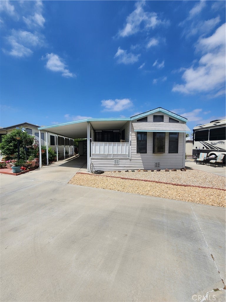 Welcome to the Mountain Shadows RV Resort and HOA Community! This charming community is exclusively for those age 55 and better. This mobile home offers just over 500 square feet of living space, with an open floorplan. The covered carport offers plenty of space for your vehicle, a golf cart, and more. Make your way up the lattice lined covered front porch, perfect for sipping coffee in the morning and watching sunsets in the evenings. As you step inside the home, you will find yourself in the living room, complete with vaulted ceilings, honey colored wood beams, large windows that allow the natural light to fill the space, ceiling fans and plenty of space for conversation and tv viewing. The kitchen is situated off of the living room and offers honey colored cabinetry, plenty of storage, tile counters, freestanding oven/range, mounted microwave, and refrigerator, as well as a gorgeous butcher block breakfast bar. The master bedroom has beautiful wood built-ins with space for a tv, linens, and drawer storage as well as a closet. The bathroom features a tub shower combo, with shower doors, vanity with a large mirror, overhead lighting and plenty of cabinet storage. An attached and enclosed sunroom offers lots of versatility and houses private laundry hook ups. The included shed offers additional storage space. The community is filled with amenities that are sure to please, including a pool and spa with bar area, additional indoor spa, community center, commercial kitchen, grill area, banquet space, outdoor recreation space for horseshoes, shuffleboard and more, a laundry room, rec room, library, gym, walking paths and more! Monthly rent includes water, trash, basic cable, and HOA amenities; tenant is responsible for electric and propane costs. No pets please.