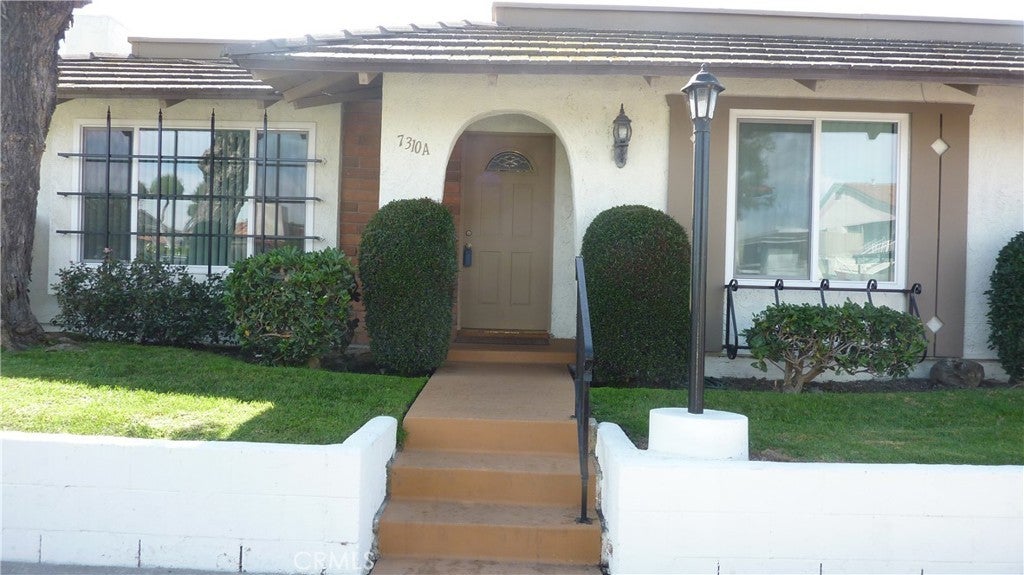 Upper-level apartment with 2 bedrooms and 2 bathrooms, featuring recently updated laminate flooring and windows throughout. The kitchen includes updated recessed lighting, stove, sinks and faucet, and a dishwasher. The dining area features an updated fan light. Bathrooms include updated toilets, a shower door in the primary suite, and a sink in the hall bath. Additional highlights include mirrored wardrobes, an enclosed patio, one assigned parking space, and a one-car garage. A community laundry room is located on site with coin-operated machines.