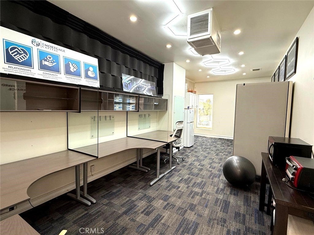 This unique and fully upgraded office suite features a welcoming entry seven built-in cubicles, and two private offices—perfect for a professional and productive work environment. Recent renovations include new carpet, high ceilings, and automatic lighting and smart locks. A mini-fridge is also included for added convenience. Whether you're in real estate, insurance, mortgage, legal services, or general office use, this space is ready to go. Located in a well-maintained building with other professional suites, it offers easy access to the 55 Freeway and John Wayne Airport. Bordering Santa Ana, Irvine, and Tustin, you're just minutes from major shopping and dining hubs.