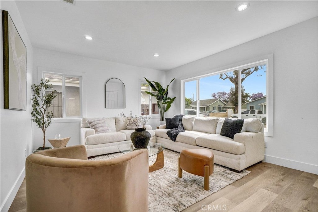 Step into this beautifully reimagined Spanish-style home in the heart of Long Beach. Featuring a complete renovation from top to bottom, this residence perfectly blends timeless character with sleek, modern upgrades. Inside, you're welcomed by a bright, open-concept layout with wide-plank flooring, smooth wall finishes, and recessed lighting throughout. The chef's kitchen steals the show with custom white shaker cabinets, quartz countertops, a stylish herringbone backsplash, and all-new stainless steel appliances. The spacious living area is flooded with natural light, offering the perfect space to relax or entertain. Outside, the classic red tile roof and smooth stucco finish stay true to the home's architectural roots, while the expansive back yard offers endless potential for personalization. Located just minutes from the beach, downtown Long Beach, and major freeways, this move-in-ready gem is ideal for those seeking comfort, style, and convenience.