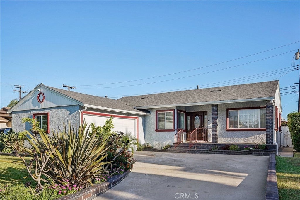Beautifully Remodeled Turnkey Home! This move-in-ready residence features 3 spacious bedrooms and 1 updated bathroom. Step inside to find fresh interior paint, modern recessed lighting, and stylish cherry laminate flooring throughout. Energy-efficient white dual-pane vinyl windows bring in plenty of natural light. The kitchen is a standout, offering ample cabinet space, granite countertops, a stainless-steel sink, and modern stainless-steel appliances—perfect for both everyday living and entertaining. The updated bathroom includes new fixtures, and each bedroom is equipped with a ceiling fan for year-round comfort. The attached garage features a brand-new door and motor, plus a washer and dryer with direct access to the home. Enjoy the open-concept layout, where the living room flows effortlessly into the dining area, creating an inviting space for gatherings. Step outside to a large backyard—ideal for hosting parties, gardening, or relaxing in the fresh air. Conveniently located near major freeways, shopping, dining, and schools, this home offers both comfort and accessibility for today’s modern lifestyle. Don't miss the opportunity to make this beautifully upgraded home yours!
