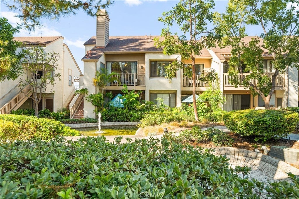 COME ON IN to this stunning, oasis in Garden Grove! This upper-level, corner unit features two bedrooms and two balconies with views of flowing brooks, meandering pathways, and beautifully maintained trees all around! As you step inside, you're welcomed by a roomy living area boasting high ceilings, open floorplan, abundant natural light, a comfortable gas fireplace and a stunning view of the Lakeside Community! As you move in the living room, open the patio doors to listen to the gentle sounds of nearby creeks and streams. Conveniently located on the balcony is a closet that houses the washer and dryer. Just a few steps away, the kitchen awaits, complete with generous dining area with plenty of cabinet space, granite countertops, a stove, a microwave and a breakfast nook. The guest bedroom has plenty of closet space and a hallway bathroom nearby. The spacious primary bedroom featuring a large, walk-in closet. The primary suite also boasts another custom-built closet along with a private vanity and sink, and its adjoining door to the hallway bathroom gives you the convenience of seemingly having two bathrooms. Other fantastic features of this home include central air conditioning, ceiling fans, new carpeting, and a fresh coat of paint throughout. It boasts a newer water heater and a recently acquired dishwasher as well. The Lakeside community is meticulously maintained and gated, featuring two swimming pools, spas and recreational trails behind the community. Nestled amongst lush greenbelts, the area is surrounded by trees, lakes, streams, and convenient sidewalks equipped with doggy waste bins. Additional highlights of this home are the two carport parking spaces and plenty of guest parking available. Enjoy a prime location near downtown Garden Grove, access to the 22 freeway, close proximity to Home Depot, Costco, Garden Grove Central Library, and the various dining spaces, eateries and shops on Main Street! This a must see! Some rooms are virtually staged in the photographs.
