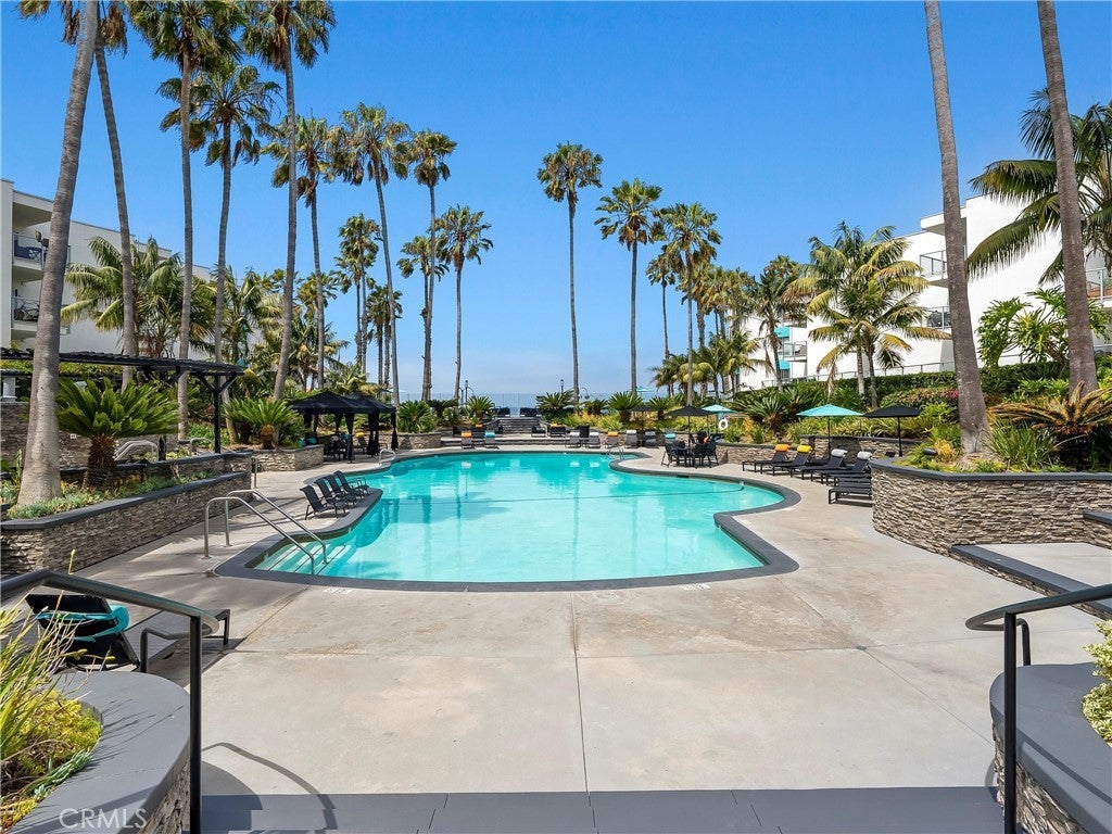 Hello Ocean View! Tucked along a lush, jungle-like pathway filled with greenery and sunshine, this rare ground-level unit feels like a private coastal retreat at the ocean. Follow the plant-lined walkway, and you’re immediately transported into a peaceful escape, no long indoor hallways or elevators here. Just a warm welcome straight to your own patio and entrance. Step inside and feel the natural light pour into a space that’s been thoughtfully remodeled from top to bottom. Enjoy your ocean view from your kitchen, dining and patio. The open-concept remodeled kitchen flows seamlessly into the patio and living area. Lounge on the couch, cuddled up next to the electric fireplace while your morning coffee brews, taking in the waves crashing just down the hill. It's bright, happy, and full of the laid-back energy that makes Redondo Beach so special. This community offers luxury swimming pools, hot tubs, BBQ areas, and gyms. One of the rarest features here? An in-unit washer and dryer, a true luxury in The Village. Two-car reserved tandem parking adds to the comfort, convenience, and charm of this beautiful home. This home sits just above the famous Redondo Beach Pier & Pacific Ocean, restaurants, and the 22 mile Marvin Braude Bike Path along The Strand.