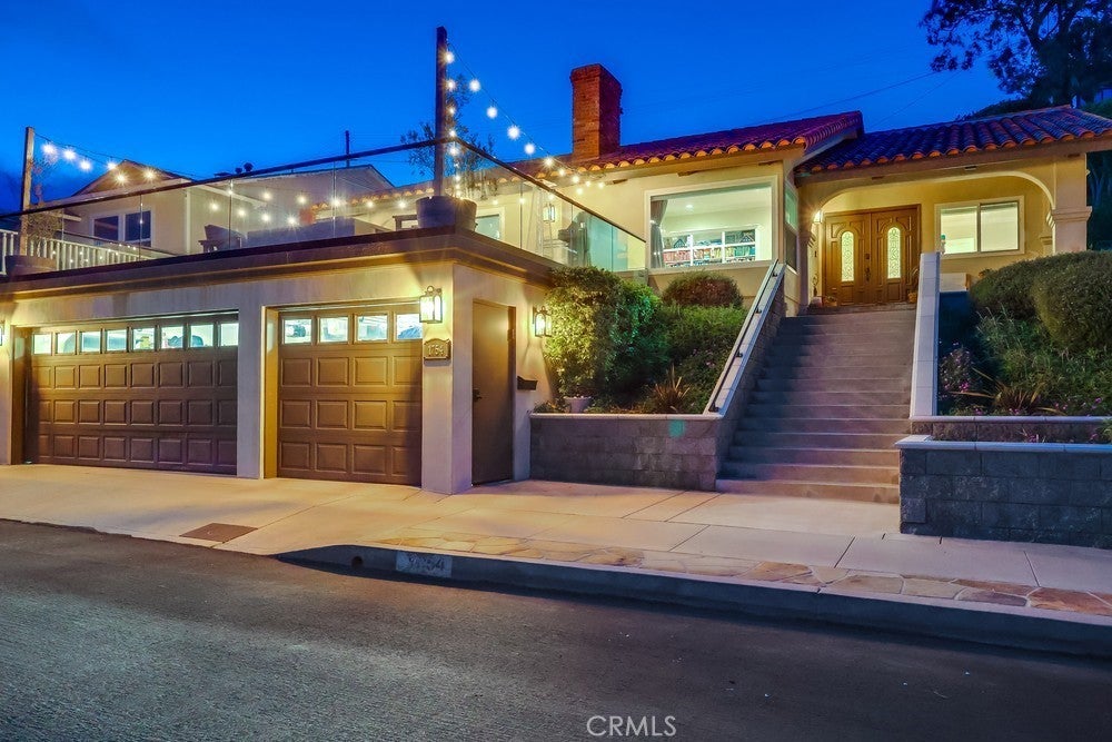 For the discerning buyer seeking a refined, low-maintenance coastal lifestyle, this Mediterranean-inspired villa delivers on every level. Nestled on a quiet cul-de-sac in the coveted Upper South Shores, the home enjoys unobstructed ocean and Catalina Island views from nearly every main living space. Cool afternoon breezes complete the relaxed, elevated feel of this special property. Completely reimagined with a focus on quality, this home offers timeless sophistication. It’s not for someone chasing fleeting trends—no stark whites or grays here. Instead, rich natural finishes and craftsmanship take center stage. Designed for those who value elegance and ease over excess outdoor space, this residence is effortless coastal living at its finest. Curb appeal is instant. A wide stone staircase leads through lush, manicured landscaping to a covered front porch trimmed in natural stone. Smooth stucco, a red tile roof, and patina copper accents complete the classic Mediterranean exterior. Through the double-door entry, you’re welcomed by soaring 10-foot ceilings and a large coat closet in the foyer. The formal living room features vaulted ceilings, a natural stone fireplace, built-in bookshelf and a large picture window showcasing panoramic views. An arched opening leads into the formal dining area and the upgraded kitchen, outfitted with custom wood cabinetry, granite countertops, walk-in pantry, and a travertine backsplash. Stainless steel appliances include a six-burner cooktop, counter-depth refrigerator, double oven, dishwasher, and custom hood. The adjacent family room offers a second fireplace, attractive tray ceiling, and sliding glass doors that open to a 600+ sq ft deck. With frameless glass railings and jaw-dropping views, it’s an ideal spot to relax or entertain. The private wing includes a spacious primary suite and two additional bedrooms, all with vaulted ceilings, wide-plank hardwood floors, and generous closets. Both bathrooms feature natural stone, granite, and custom cabinetry. A large indoor laundry room adds ample storage, a utility sink—and even an ocean view. Crown molding, Baldwin hardware, designer lighting, recessed lighting, and a spotless three-car garage complete this truly special home. ALSO FOR LEASE AT $5500/MONTH.