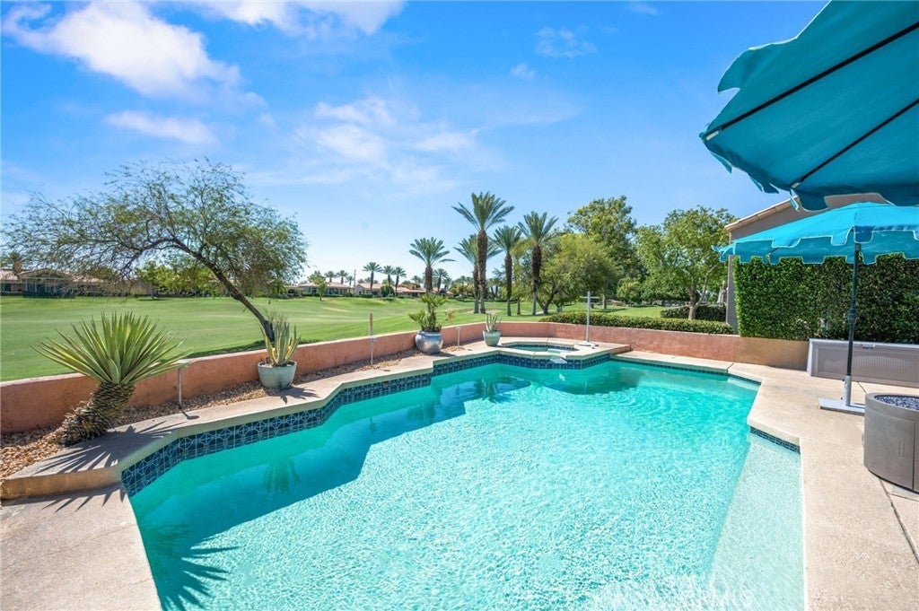 This meticulously maintained Mission Hills gem awaits your arrival. Located in the highly sought after gated community of Mission Hills in Rancho Mirage, you will find a wonderful home featuring expansive outdoor living space, a large pool and spa, barbeque area, pool deck, and a covered outdoor living room perfect for entertaining guests. Perched above the 4th fairway of the Westin Rancho Mirage Golf Resort & Spa, the views are simply spectacular. The main house consists of 3 large bedrooms and 3 baths, including two spacious primary bedrooms, each with their own private on suite full bathrooms. The beautiful kitchen is equipped with stainless steel appliances overlooking the pool area and golf course and receives the perfect amount of natural light creating a refreshing space to prepare meals for family and friends. There is a separate dining room, large living room, laundry room, one primary suite, and guest bedroom and bath all on the main level, while the second primary suite is located upstairs. And lets not forget the attached Casita with its own private entrance featuring 1 bedroom, a large living space, and 1 full bath, perfect for accommodating overnight visitors. Park two cars in the garage and keep your golf cart safe and secure in its own garage. This offering represents an outstanding opportunity to own a truly fantastic property in the peaceful setting of Mission Hills.