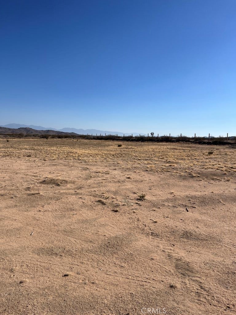 2.5 Acres of land for sale in Adelanto, California surrounded by beautiful desert landscape with mountain views in the distance. A neighbor in the area has installed a Modular/Prefabricated Home and others have Motor Homes on their property. Dirt road access.