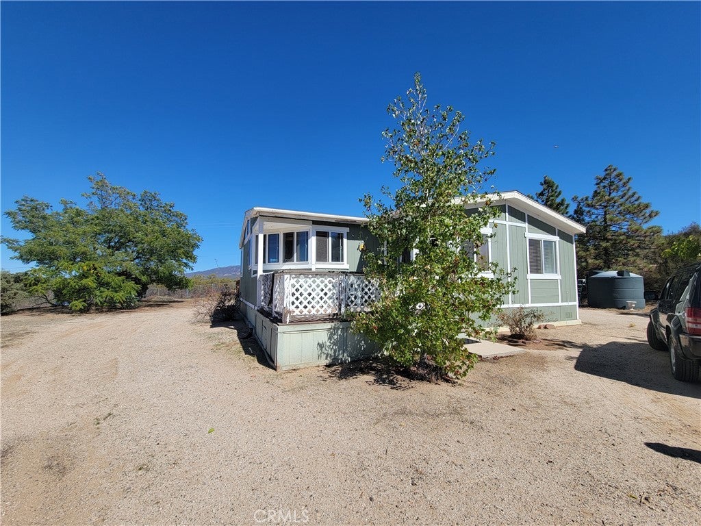 Enjoy peace, privacy, and panoramic views from this inviting 3-bedroom, 2-bath home nestled on a usable 5-acre parcel. Thoughtfully designed for comfort and functionality, this home features front and rear decks, perfect for relaxing or entertaining. Inside, the living and dining areas include a cozy pellet stove—ideal for chilly winter nights. The spacious kitchen has a center island, built-in office area, and a pantry. A wall of windows fills the space with natural light and showcases sweeping views of the surrounding landscape. French doors open onto the rear patio, extending your living space outdoors. You'll find ample storage throughout the home, including large closets . Flooring includes tile in bathrooms, laminate in the main living spaces, kitchen, main bedroom and carpeting in the other 2 bedrooms.  For those who love to work on projects or need extra storage, a separate workshop with three rooms provides endless possibilities. There's also a tall timber-framed structure with a roof and open sides—formerly used for RV storage—with potential for many future uses.  The fully usable property is fully fenced and has mature pine trees, offering plenty of space for horses, farm animals, gardens, orchards, or whatever your vision may be.